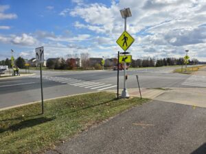 During the week of November 10, 2025, The Washtenaw County Road Commission (WCRC) installed Rectangular Rapid Flashing Beacons (RRFB) at the intersection of Tuttle Hill Rd and Merritt Rd in Ypsilanti Township. The crew also installed advance notification pedestrian crossing signs with LED border lighting.