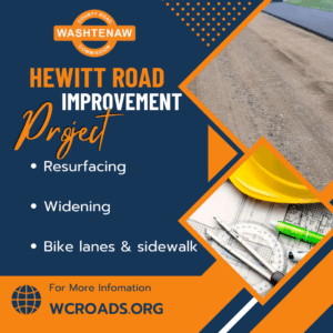 The Washtenaw County Road Commission (WCRC) is pleased to announce an upcoming infrastructure improvement project for the 2027 construction season. The planned construction will take place on Hewitt Road between Packard Road and M-17 (Washtenaw Avenue) in Ypsilanti Township.