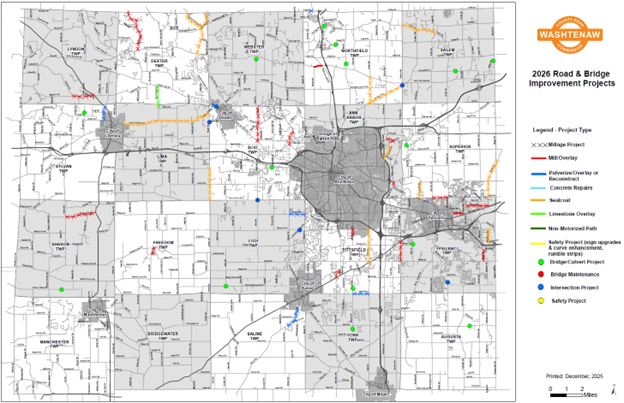 The Washtenaw County Road Commission (WCRC) is committed to investing almost $8.2 million solely dedicated to the enhancement and improvement of roughly 30 miles of paved and unpaved roads across Washtenaw County during the 2026 construction season. This work is supported through 2025-2028 Four-Year County-Wide Roads and Non-motorized Millage, Federal Funds, Township partnerships, and Michigan Transportation Funds (MTF).